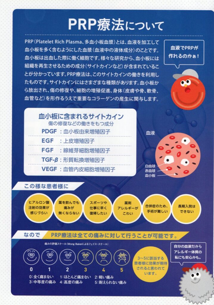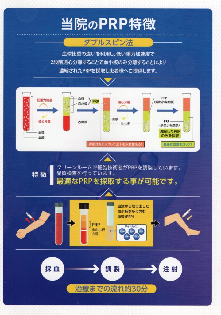 PRP(多血小板血漿)療法とは、患者自身の血液から血小板を濃縮したPRPを、患部に注射する再生医療です。